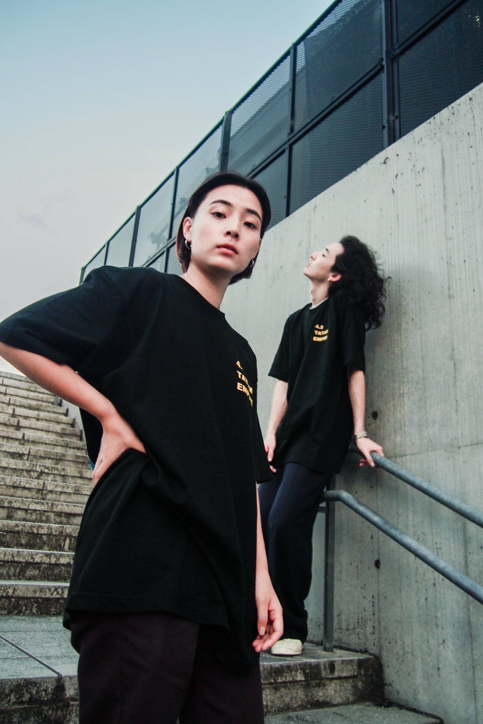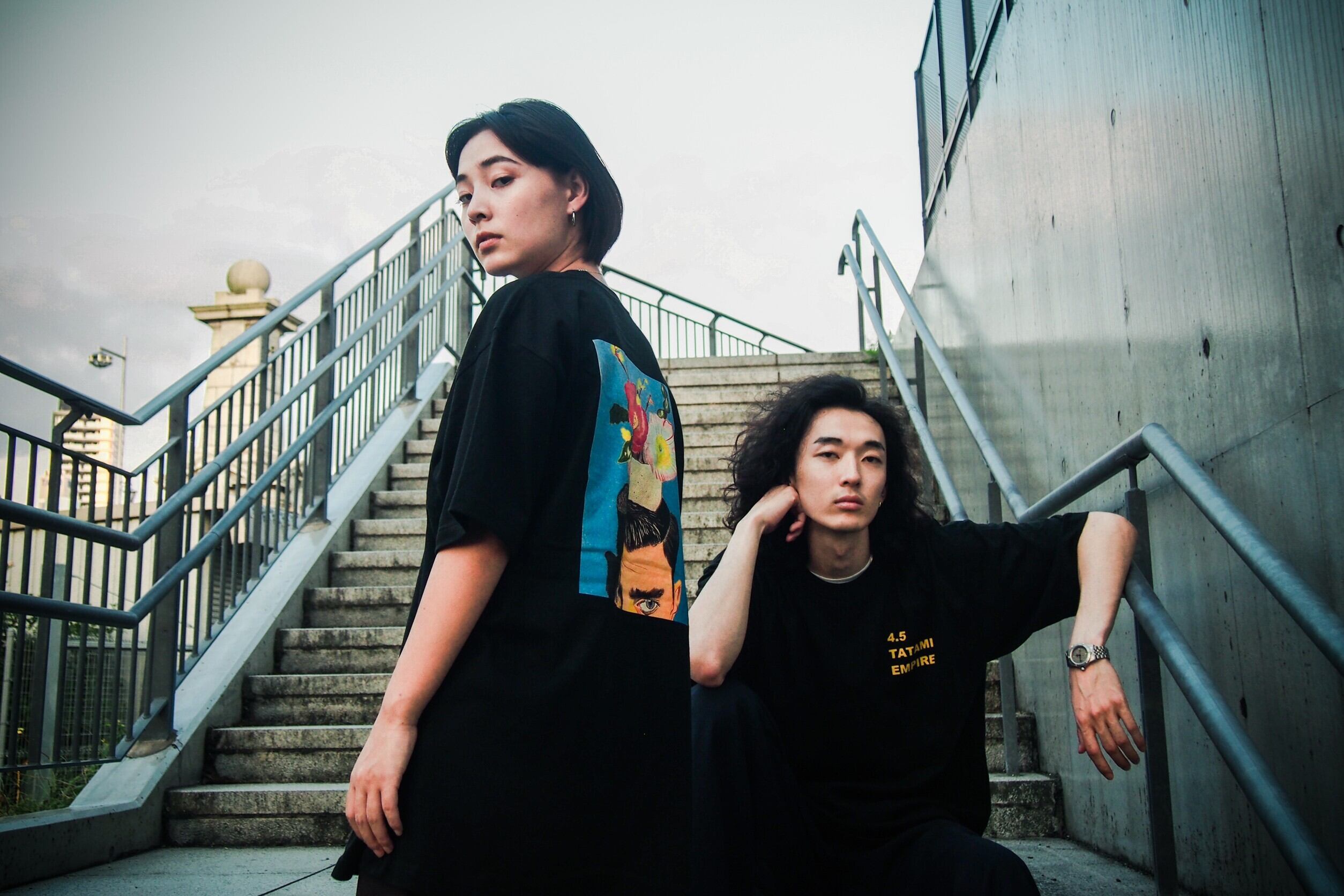 frontに4.5TATAMI EMPIREのロゴ、backに都築宏宗氏の色鉛筆画「頭上に花瓶」のシリーズをプリントした存在感抜群の一枚です。