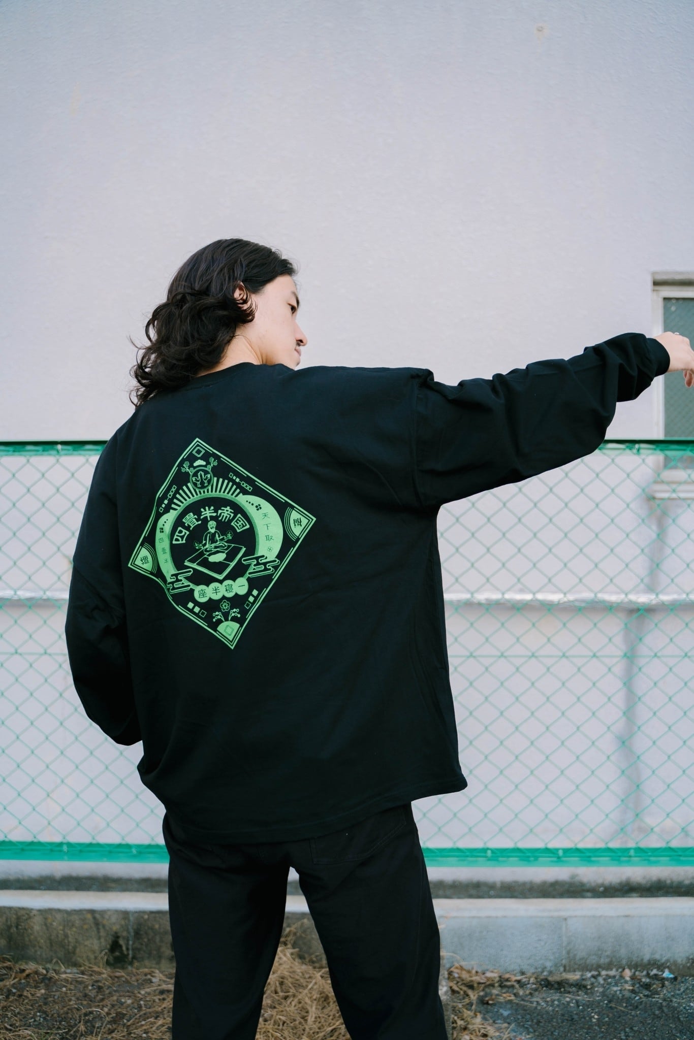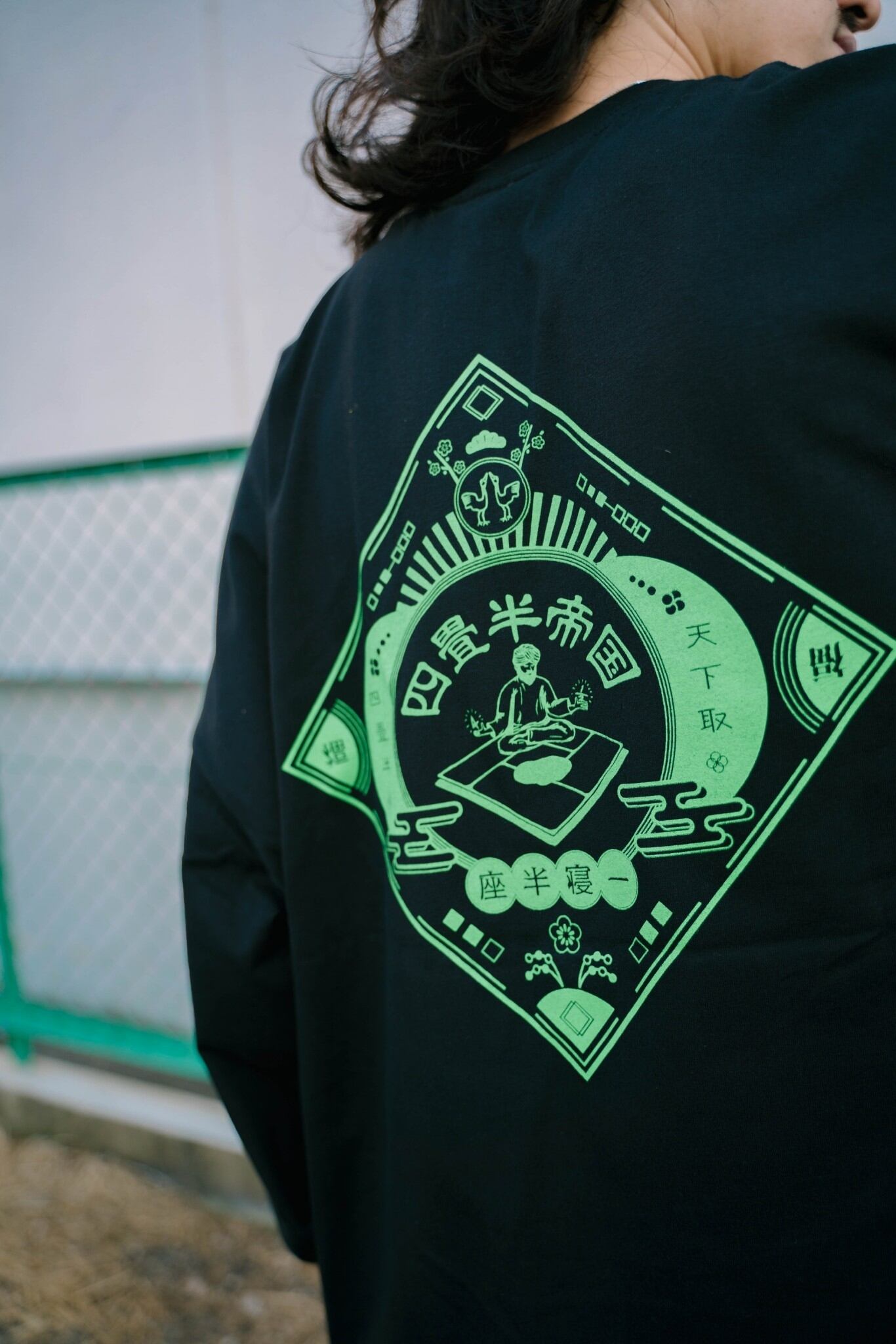 四畳半帝国のコンセプトである 「座して半畳、寝て一畳、天下取っても四畳半」 が刻まれた一枚です。 ・モデルサイズはmen 175cm XL、woman 163 cm Lです。 ・購入完了後のキャンセルはお受けできません。 ・商品不良以外の到着後の返品・交換は原則受けておりません。